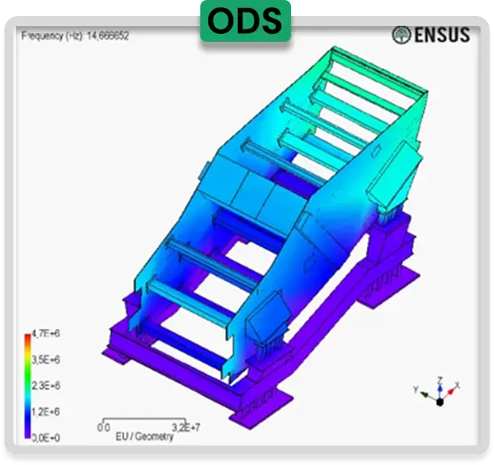 Criamos uma animação 3D que revela como sua máquina se deforma durante a operação. Essa análise visual é fundamental para compreender a causa raiz de vibrações excessivas e direcionar para a solução mais eficaz.